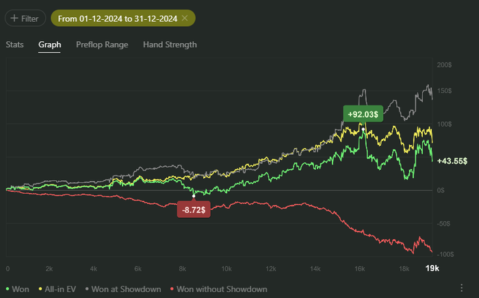 Новогодняя суета, на работе завал полнейший, времени на покер вообще почти нет, в то время как поляна сейчас в изобилии от фишей, а приходится работать, что не может не удручать... Дай бог сил к следующему НГ заниматься исключительно покером)))