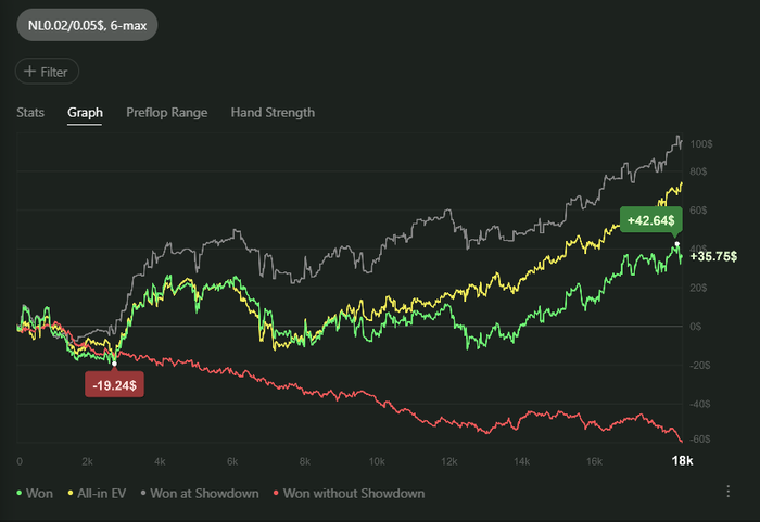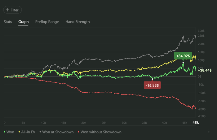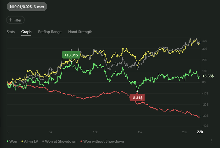 Вообще очень странная история... сегодня меня переехали с 20%, а ещё я выставился 75/25 в мою сторону и при 2х крутках меня первый раз переехал, второй раз я своё забрал... а график показывает херню... по сути ЕВ должно быть выше!