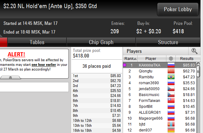 Итого 25 турниров на общую сумму $540. Предлагается играть по схеме 70на30 (т.е. 30% откат от чистого профита в пользу игрока), причем 20% Паша обязуется потратить на погашение долгов.