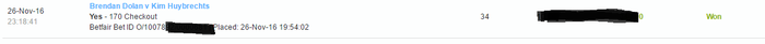 268. Brendan Dolan v Kim Huybrechts, Yes - 170 Checkout - 34 betfair - 0.1 ед