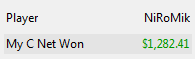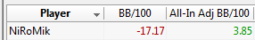 SB: 68.25 BB (VPIP: 17.36, PFR: 9.03, 3Bet Preflop: 0.00, Hands: 145)