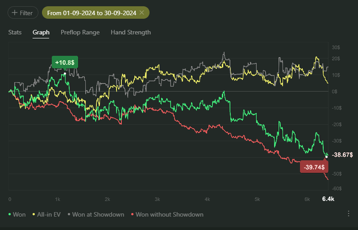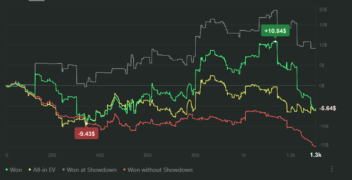 Хотел отыграть 1к рук, но понял, что эмоциональное состояние и усталость после работы берут своё, закрыл столы.