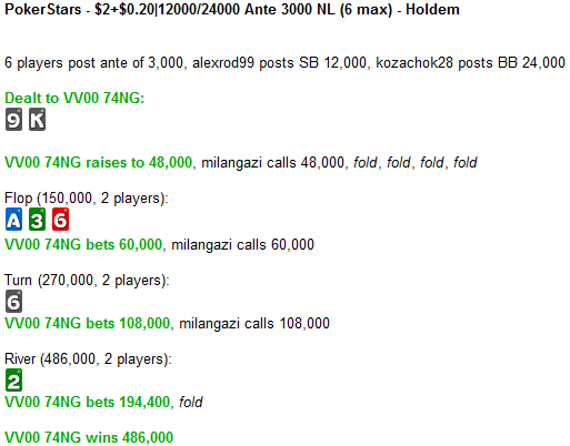 Ах да, совсем забыл. Марафон я проеб. Нет смысла пытаться вертеться - лучше нарушить установленные мной же лимиты и спокойно катать минивсоп. VV00 74NG 1-1 PokerStars Херачим дальше!
