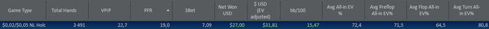 Start Bankroll 668,92$; Stop Banrkoll 695,92$; Cтолов 6; Мини сессий 6; Рук: 3491; Время = 360 мин; Результат = 27$; bb/100 = 15,47; Моя оценка = 5 з 10. Цель на день Net Won(110$) выполнена на 24,5%; Цель на день Hands (3800) выполнена на 91,8% Цель Руки на первый игровой отрезок за все дни (100К) выполнена на 92,2% (92249 рук); Цель Win Rate на первый игровой отрезок за все дни (542,74$) выполнена на 44% (239,07$); Comment: Хорошо отыграл. В будущем когда спорная ситуация напоминать Себе что тайт-из-райт и делать пас.