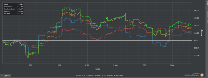 Что могу сказать по ощущениям - с фолдом еще близко не подружились но уже есть прогресс, еще буду стараться отменить функцию мозга ложить ОПов на адекватный диапазон и в ситуациях где кол хуже чем рейз нажимать пас.