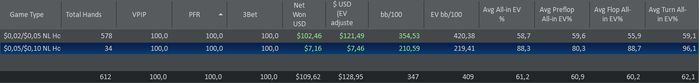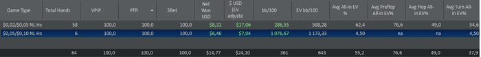 sell37, У Меня показатели хуже чем у Тебя но ситуаций побольше, + по сути результаты этих показателей во многом зависят от пост флопа у Меня слабее чем у Тебя по этому у Тебя винрейт и выше все логично, посмотрю что будет дальше.