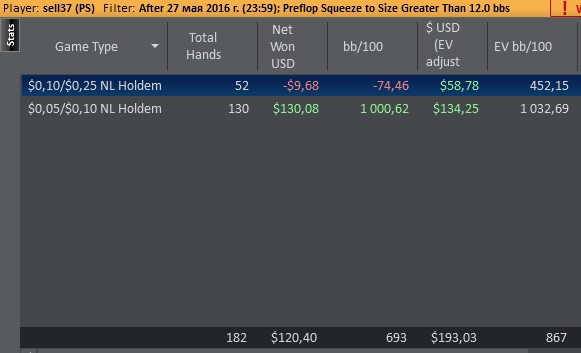 Dzont, Да Я знаю что Ты говорил, Я пробовал не понравилось нашел середину на 11,2 и 12,2 на 3бб в позе и без, вполне устраивает ну и увеличиваю под фишей которые не сдаются, пока доволен, может потом поменяю Свое мнение.