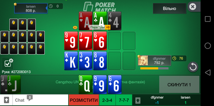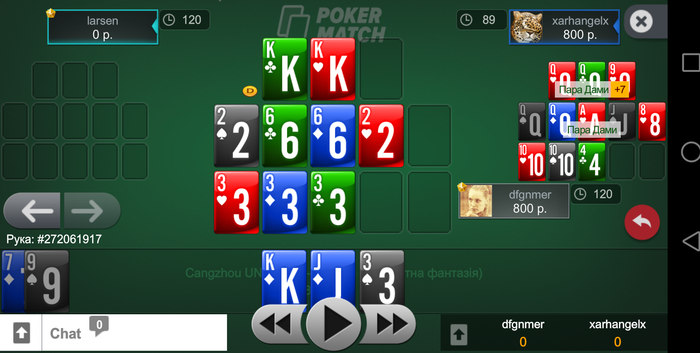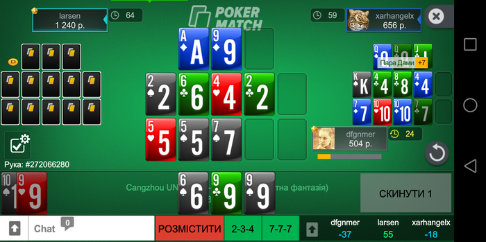 Но считать точно вероятность оппа сгореть мне лень (она точно высокая). Простого способа я не знаю, и скорее всего его и нет, кроме монте-карло, а строить дерево различного прихода карт и соответствующих оптимальных решений - того не стоит. Я в любом случае уверен, что мы должны выбирать вариант "сейф".