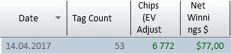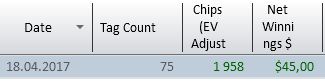 Итак, сегодня, к сожалению, тоже 50 турниров получилось. Играю сессиями по 25 турниров (1.5-2 часа по времени). Можно было бы начать сейчас, в это время, третью сессию, но сегодня нас пригласили родители в гости на пасху, поэтому нужно подготовиться.