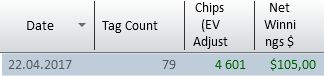 Итак, сыграно 200 турниров на 15шках. Результаты, конечно не совсем радуют, 31 фишка с турнира. Но надеюсь это стрикует, а не я такое дно. Ну и 200 турниров это совсем не показатель. По факту -120$, по ожиданию - в небольшой плюс.