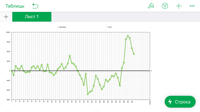 Ух и надовали мне там по щам на 50 БИ. За 60к рук, большой перерыв как не крути сказывается, плюс конечно буст покер более дисповый , где чаще попадаем в кулеры и тд. График как и прежде строю в намборсе выгружая историю рук: