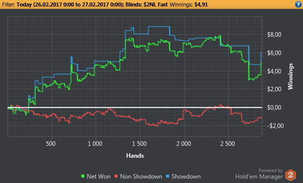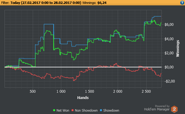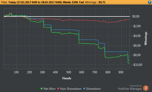 oucher, У меня стандартный стил 2,5 бб. На бб фиш, он бы не скинул своего туза после кола терна, фолд эквити у нас практически не осталось. Туз на самом деле для нас тут не удобная карта, так как в диапазоне кола фиша были как дрова, так и Ах. Как показали расчеты ставка на терне тут около нулевая, а ривером минусовая. Не забываем, что мы еще не в позе.
