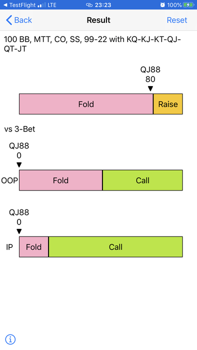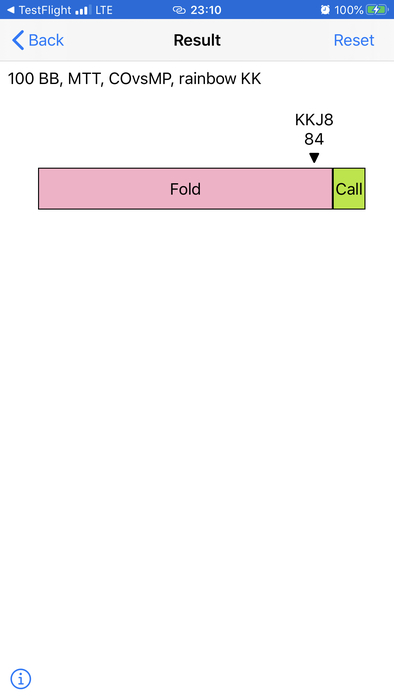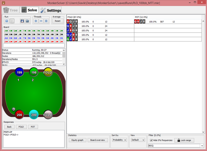 1. Насчёт того, что сразу непонятно - согласен. Но мне кажется проще уже не придумаешь, когда немного вникнешь. Есть категория, из которой наш хенд. Есть шкала, которая показывает, какая часть категории идёт в Fold/Call/Raise. И есть сила нашей конкретной руки в этой категории. Бета-тестирование длилось 2 месяца и никто не придумал/ не предложил лучшего вывода информации.