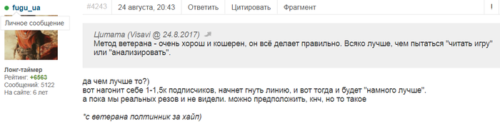 статистика здесь не показатель - достаточно почитать ваше обсуждение моей работы здесь - https://forum.gipsyteam.ru/index.php?viewtopic=117107&st=4240#entry5239269 - и очень оперативную реакцию на мою немного запоздавшую ставку здесь - https://forum.gipsyteam.ru/index.php?viewtopic=120212&st=820#entry5244561 - сообщение №822 - любому будет понятно, что вы достаточно внимательно следите за моей работой - это ли не лицемерие, коллега???