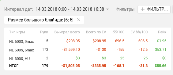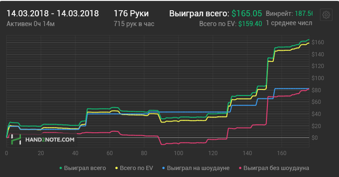 Ну а так я почти не залился , по ЕВ вообще сегодня +1к , если бы не пару хреновых раздач , которые я как фиш сыграл на нл600 , то настроении было бы вообще отличное , наверное сегодня поиграю в нл200 , и так моей нервной системы на сегодня хватило