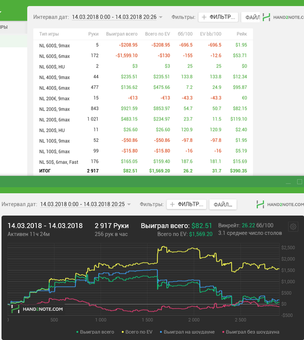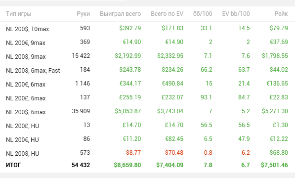 У меня ровно такой же винрейт на нл200, дистанция правда больше. Лимит действительно простой. Но вот как набрать дистанцию на нл400 не понимаю, хороших столов реально очень мало, что уж там говорить о нл600. Тем более мне проще катать хороший стол нл200, чем плохой нл400, выгоднее по деньгам. Насчет плюсов катки днем похоже я не ошибся, на нл200-400 днем реги тоже проще, но фишей меньше.