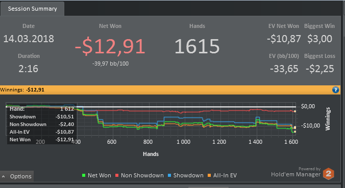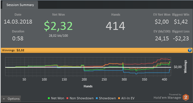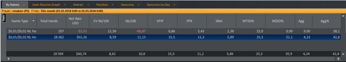 Решил взять 3-х дневный перерыв и отдохнуть от покера. Не знаю, просто не тянуло играть, хотелось максимально отдохнуть и восстановиться после рабочих смен. Сегодня желание и настроение было на высоте, все складывалось довольно удачно. Отыграл всего 1к рук, теперь будем играть не на количество а на качество и соотвественно $/hr. В связи с этим хочу запустить марафон, скажем 300$ за месяц (всегда ставил для себя немного заоблачные цели). Играть буду 6-8-10 столов нл2 в зависимости от самочувствия и обстановки. Также будут вылазки на нл5, но это немного попозже.