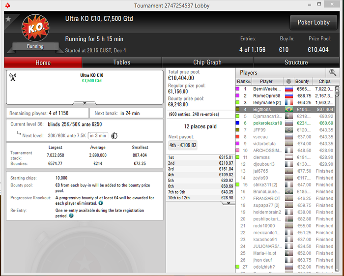 Сыграно турниров :1.513 Раздач сыграно : 116.887 BB/100 : 13.90 EV BB/100 : 13.91 Ср. ставка: $2.61 Прибыль: $875 ITM%: 30.6% Время : Миллион часов (