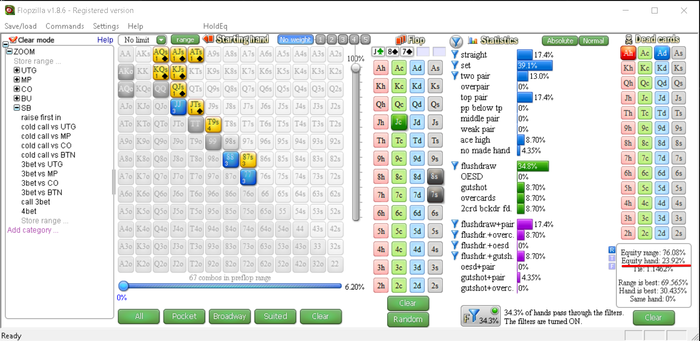 Kazrich, это размышления походят под агро фиша, у меня нет причин думать, что опп агро фиш, напротив, опп действует пассивно, чекая две улицы, плюс народ по определению лузово-пассивный. Плюс эти размышления имеют смысл, если опп держит AK. Я понимаю, что AK почти всегда поддержат ставку, я здесь скорее выбиваю слабые пары и руки с которыми мы поделим.