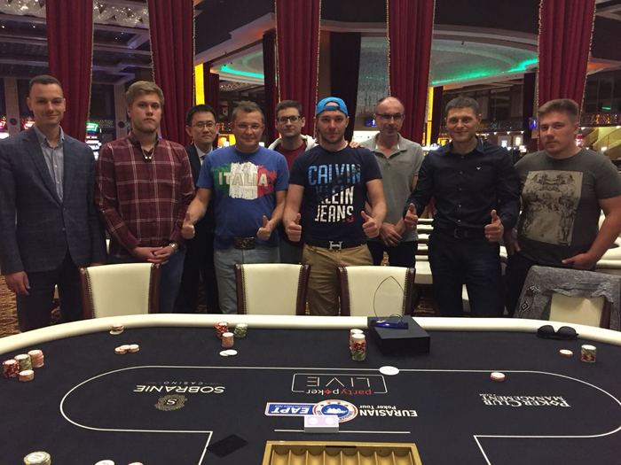 Всем добрый день! Извините за задержку))) Информация по турниру "Main Event". После обсуждений и определённой "делёжки" выплаты выглядели следующим образом: 1) Денис Я. - 3430 у.е. (171 500р) + кубок чемпиона. Участвовал по сателлиту👍👏🏻 2) Роман С. - 3430 у.е. (171 500р) 3) Виктор Л. - 3430 у.е. (171 500р) 4) Евгений Ф. - 2050 у.е. (102 500р) 5) Александрас А. - 2050 у.е. (102 500р) 6) Сергей Ф. - 800 у.е. (40 000р) 7) Алексей Н. - 500 у.е. (25 000р) 8) Сергей У. - 500 у.е. (25 000р) Спасибо всем за игру и поддержку!