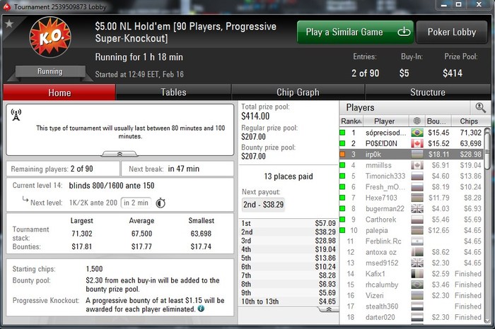 Вышел в ХА 23ББ вс 134ББ, предложил поделить 50/50 фиш не захотел. Когда выровнялись стеки опп сам просил пополам делить, но не тут то было я обидчивый
