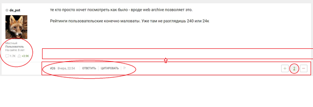 Для кого-нибудь ещё это актуально? Понятно, что можно быстро привыкнуть к клику по кнопкам "цитировать" и "ответить", но вот дату сообщения уже не видно. Ещё тяжело считывается цифра рейтинга сообщения из-за подчёркивания. Может, лучше убрать это подчёркивание, и сделать циферку жирной? При этом из-за разницы в размерах шрифтов базовый текст кажется действительно сравнительно великоватым. Ну, и если на компьютере браузеры запоминают масштабирование для разных сайтов, то как быть мобильным пользователям с плохим зрением?