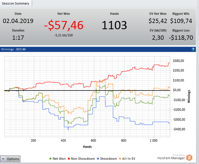 Results: $175.38 pot ($2.50 rake)