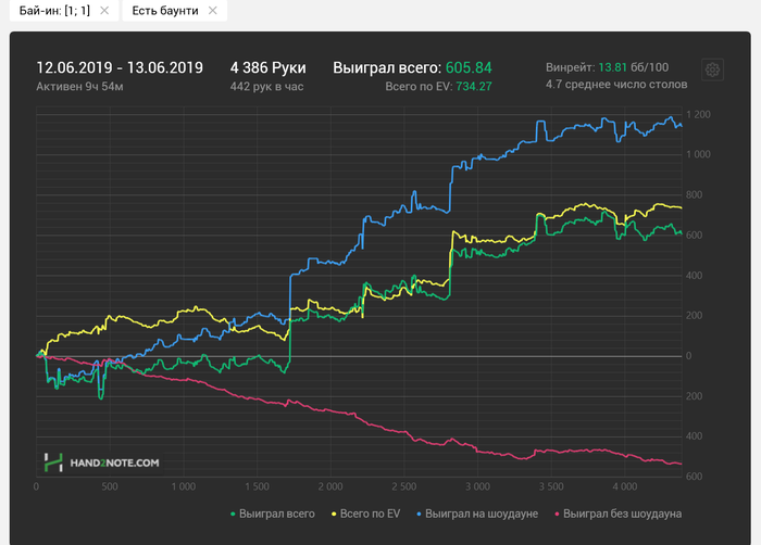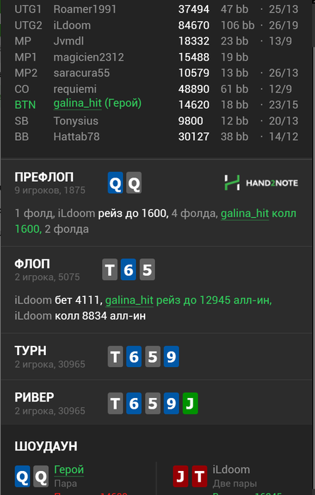 но черт возьми! чиплидер со стеком в 100bb на финалке 9max(я считала что мой пуш заколлит однозначно), сыграла колл-чек-пуш, как и планировала(без выхода AK) с самого начала но нет уж