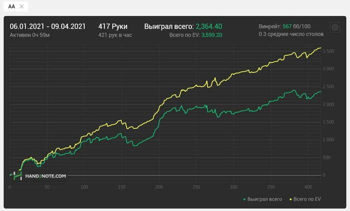 И ты правда веришь в то, что человек за четыре месяца (с 22.12.2020 начал) бьет неспеша НЛ2 с винрейтом 15,5 bb/100 и НЛ5 с винрейтом 5,1 bb/100 ?