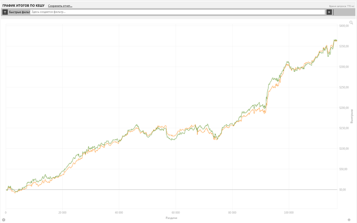 Посмотри на мой общий график на небольшой дистанции 117к рук. И если я не прав, то можешь дальше обсирать, мне по барабану, твои проблемы.