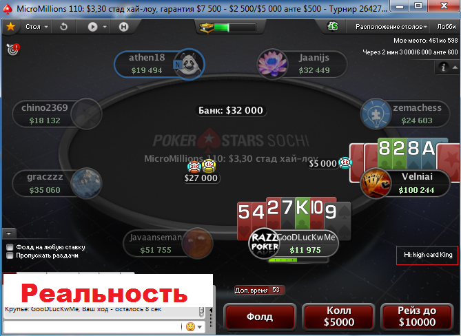 RubAka @ 25.7.2019 Похоже ты мне свое невезение вместе с 5$ прислал((( Получил монеты, пересадили за другой стол, стек более 80К...три раздачи..стек 17К (((