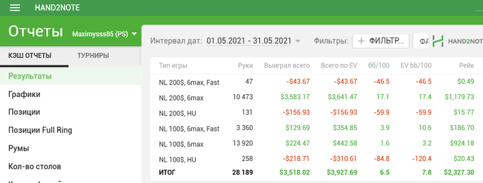 Результат в столбце "выиграл всего" это окончательно с вычетом рейка?