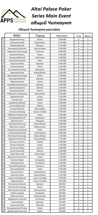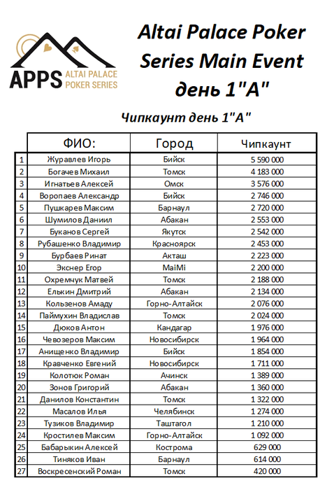 Вчера отыграли однодневный турнир кубок "Бирюзовая Катунь". Стартовав в 21:15, турнир набрал 53 регистрации и 9 призовых мест, в 02:15 сформировался финальный стол: