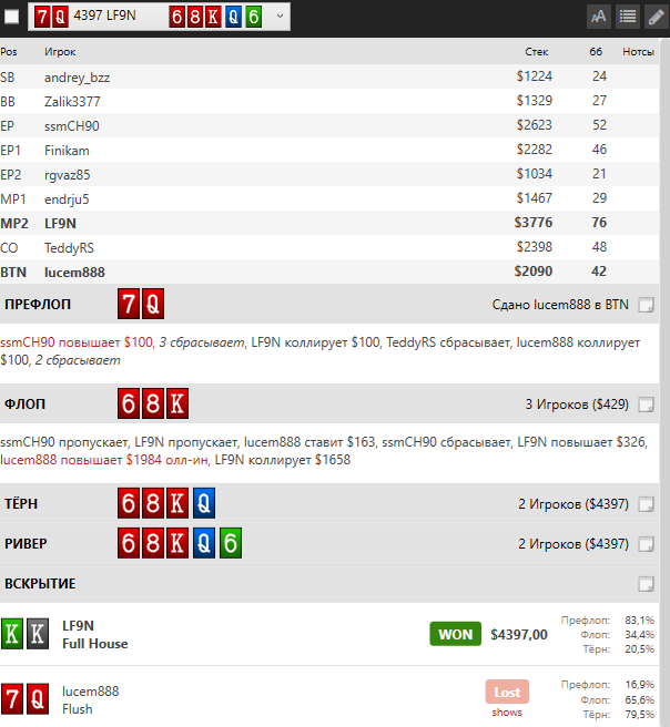 При этом стоит понимать 2 аспекта - на наш пуш он будет отвечать только топ-руками, что поставит нас в очень неловкое положение. Ну и 2й аспект - все топовые игроки, которые так или иначе делятся с нами мудростью своей, советуют избегать ситуаций где имеет место быть игра 50/50 на весь стэк.