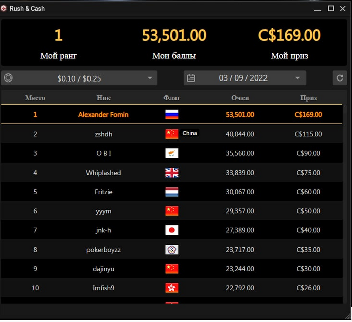 Почти 23к рук. + 169 гонка + 230 по профиту