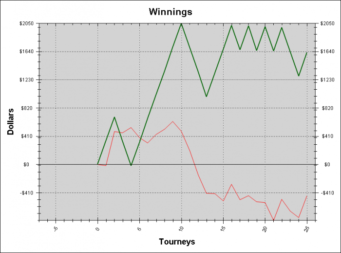В СТ линия ЕВ достаточно объективна. В твоём примере линия ЕВ покажет, что ты затащил этот матч, т.к. основная часть чипов был выиграна, когда ты был сильно впереди. Откуда инфа, что ХМ покажет иначе?