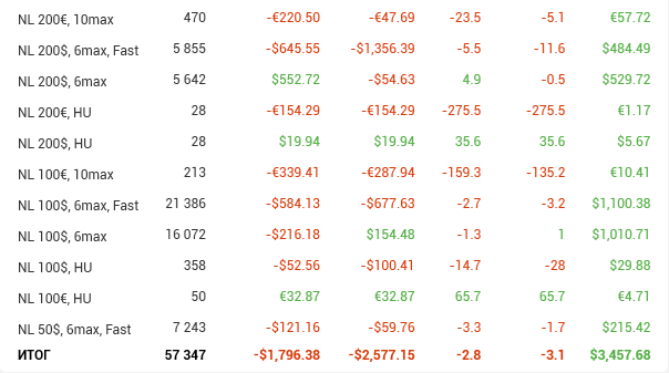 Второй минусовый месяц в году. Было весело (нет). Раздавали отвратительно, играл так же. Перебор не отражает сути рана, когда оппоненты доезжают на риверах во все, что угодно. В декабре сделаю упор на обычные столы и z50.