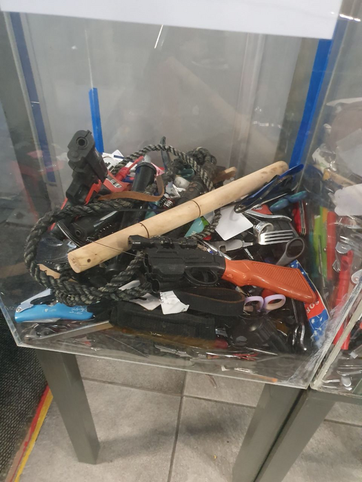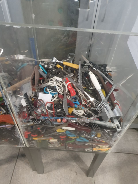 То что пытались пронести на борт в Тивате) У нас изъяли канцелярский ножик, который нужен моей жене для искусства.