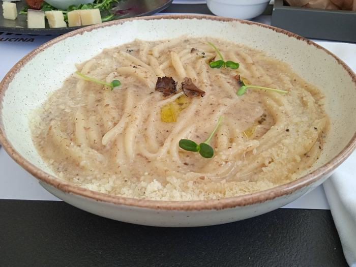 Пожалуй, топ-1 эстетическая подача в Белграде. Равиоли с трюфелями, сливками и домашними сырами
