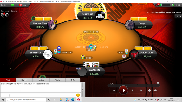 Кто шарит за 6+, норм префлоп пуш в дипе с АДо на месте снэпа?(разумеется, меня ебнули)
