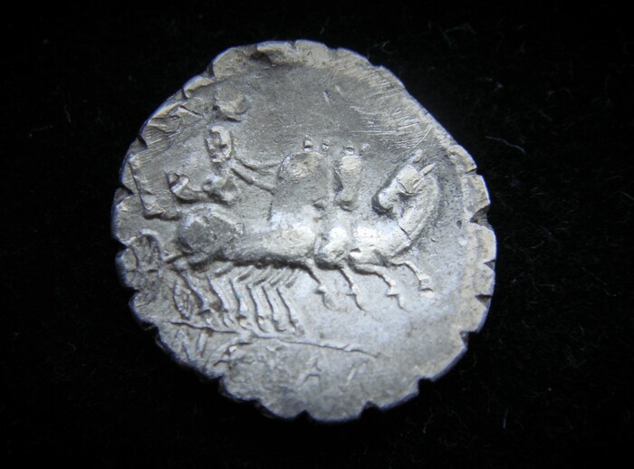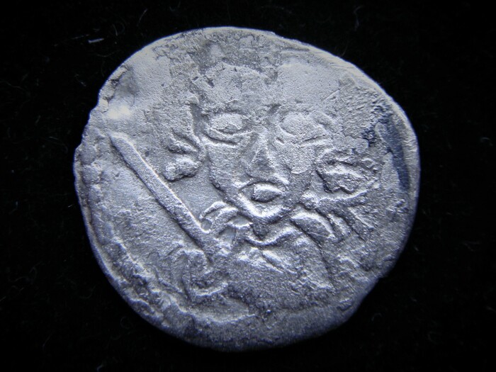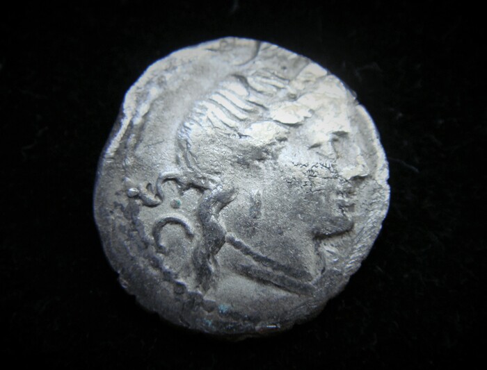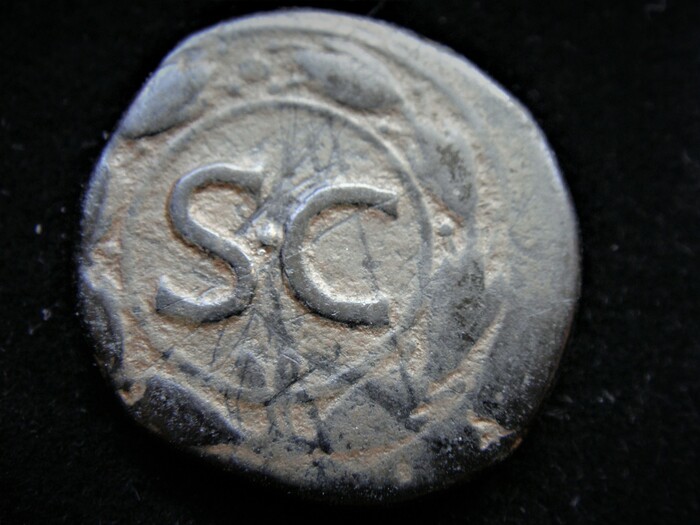 Аверс: Голова Венеры, украшенная диадемой, с серьгой и жемчужным ожерельем; сзади, S · C.