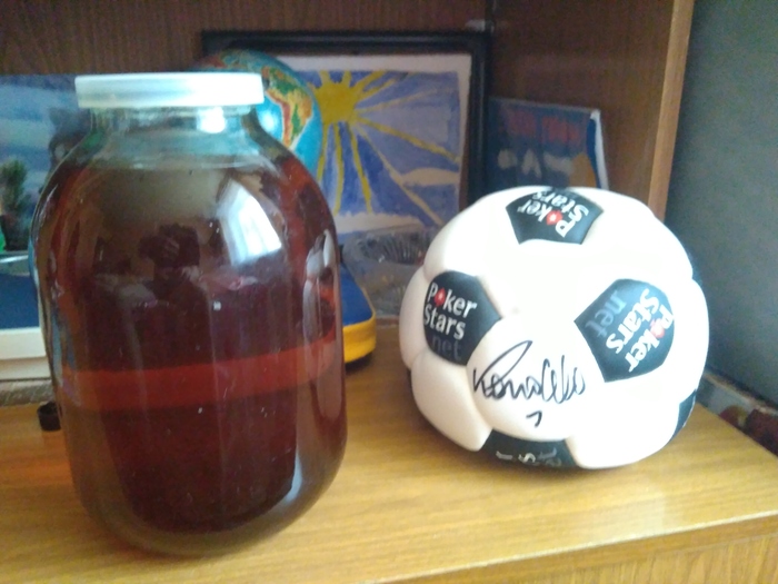 Перед отъездом притащил мне три трехлитровки последнего своего замеса, вот их потихоньку и дегустирую. Охренительный этот замес получился, очень вкусен, нектар , а не алкоголь!