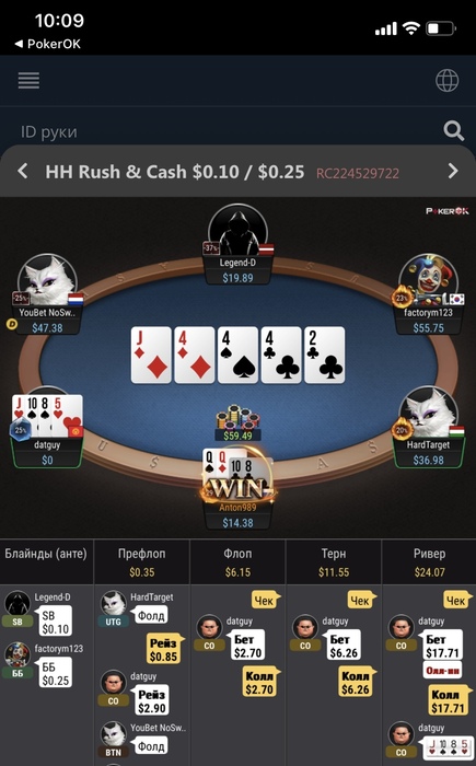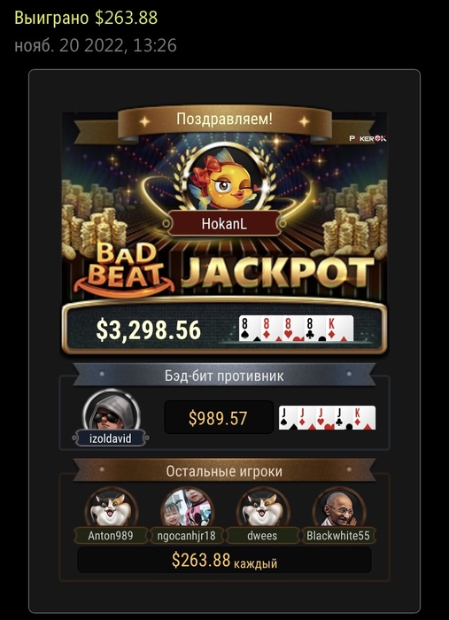Когда на Pl5 против моего каре скидывали натсовый фулхаус было не весело, но когда на Pl100 третий сет алл-инят - это радует