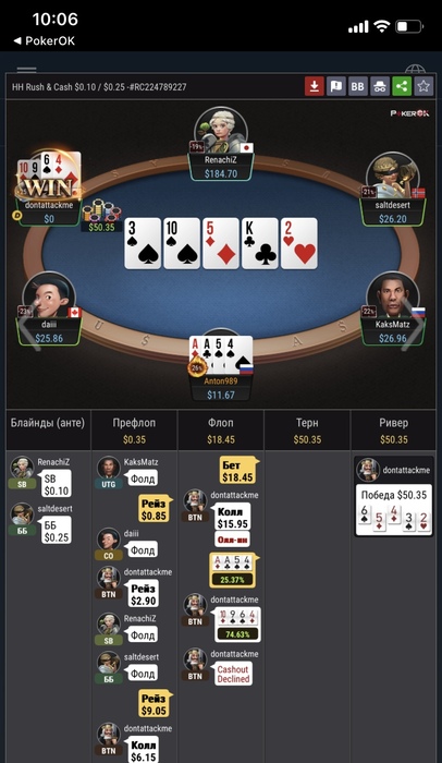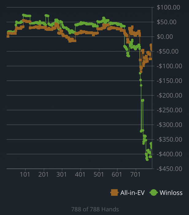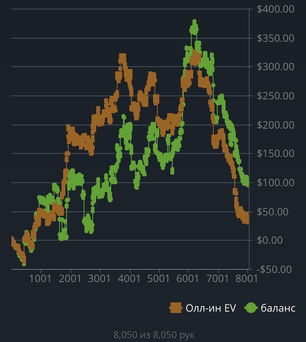 Так всё хорошо начиналось, +150$ шёл, но после 5000+ раздач начинается усталость и уже начал лишние разы заходить в раздачи, участвовать в мультипотах и в целом перестало складываться🙀 ещё оказалось тех. работы с утра, ночью обошли на лидерборде