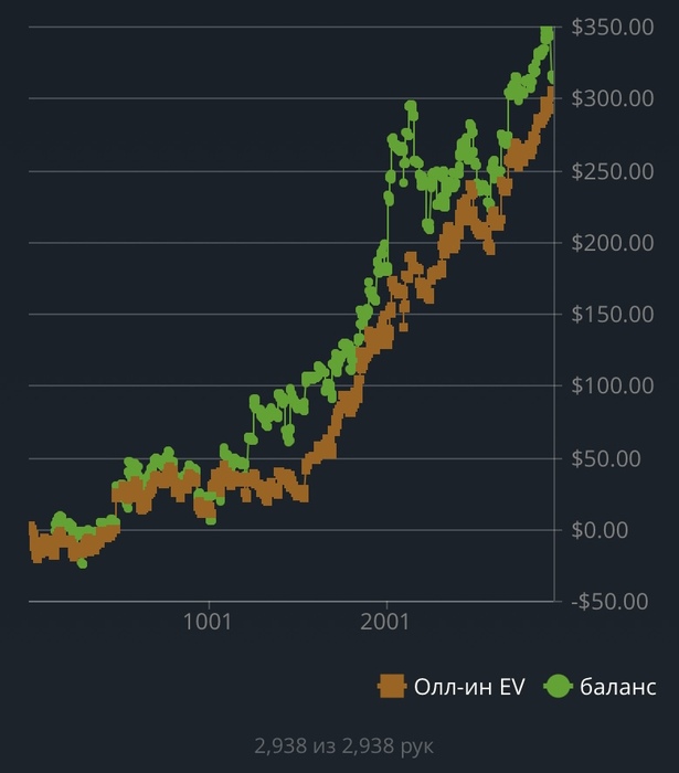 Ну вот наконец-то нормальный график и результат, крутить один раз - ВСЕГДА! очень хорошо разгружает мозг и помогает сконцентрироваться на игре😎 отсутствуют лишние: раздумья, сожаленья и прочие жаленья😄 ну и экономия на дистанции, на Pl25 пока так