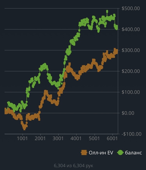 Да и вообще я заметил , что на ХА этих у регов такие крутые графики, что я ни в одной дисциплине таких не видел. А на покерКЕ вряд-ли такой формат запустят. Тут такие перекосы по плюсовость не нужны как я понимаю.