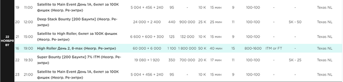 Продолжаем! Серия приблизилась к своему экватору. Вот такое расписание запланировано на пятый день Russian Poker Cup, 22 ноября, в казино Tigre de Cristal: