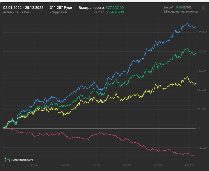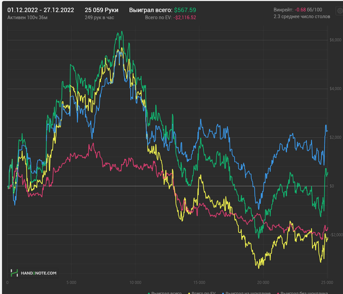 Резко проебал много и потом сложно было А игру показывать хз. Из хороших новостей: я выяснил в каких спотах я прям реально слабоват, появилась мотивация теорию учить. В общем работы дохуя, в следующем году нужно подсобраться и показать норм результаты.