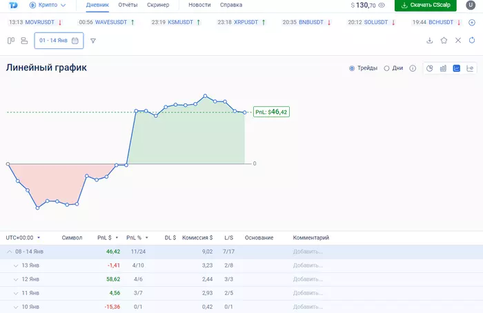 Начальный деп был 50$. За 3 дня деп стал 81$. Торгую на Байбит, через андроид приложение. Скринов со связкой ТФ пока не будет. Продолжу их делать когда буду торговать с компа. А пока только скрины с телефона.