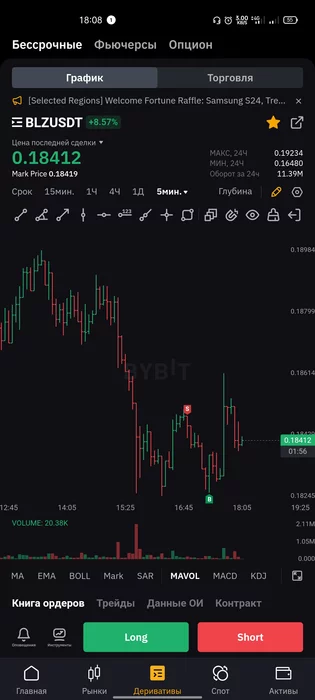 Фьюч Blzusdt, отработка диапазона м5